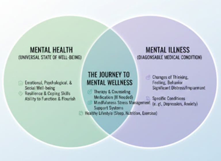 The confusion between mental health and mental illness stems from a lack of precise language and a historical tendency to lump all emotional and psychological struggles into one vague category. However, just as physical health and physical illness are distinct concepts, so too are their mental counterparts.